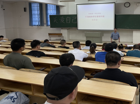 为了贯彻和落实学校有关学风建设的会议精神,5月11日下午,资产管理处牵头,联合学生工作处、后勤处,组织全体门面经营户在玉衡楼南栋101教室召开了“打造服务学生营商环境”动员会。会议由资产管理处杨建良副处长主持,资产管理处处长彭善琼、学生工作处副处长吴涛、后勤处医卫科科长杨奇志及资产管理处房屋管理科全体同志参加了本次会议。