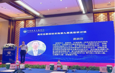 6月3日上午,由中国教育后勤协会主办的全国高校后勤招标采购第九期高级研讨班在长沙华天大酒店开班。我校资产管理与招投标处处长、湖南省教育后勤协会采购管理专委会主任、湖南省政府采购协会教育采购专委会副主任莫崇芬以自身丰富的经验给大家上了一堂生动、扎实的培训课。