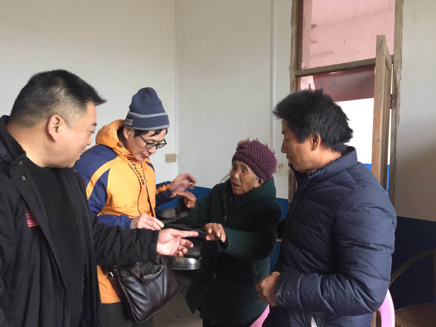 临走时,我处程方军老师、外国语学院邓院长代表李克勤副校长、资产管理处和外国语学院的全体老师,又给李自训全家送上了400元的帮扶资金和200元的慰问物资。